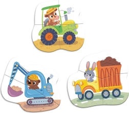 Opdag sjove konturpussel med transportmidler for de mindste. Sættet tilbyder tre puslespil med forskelligt antal brikker (2, 3 og 4), som understøtter udvikling af fantasi, logisk tænkning og finmotorik.