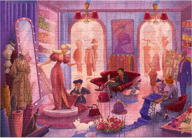 DODO puslespil: Mode-studie tager dig med ind i den fascinerende verden af et modeatelier, hvor der skabes smukke kjoler. Dette puslespil giver ikke kun underholdning, men udvikler også finmotorik, koncentration og logisk tænkning. Hver af de 300 brikker er præcist udskåret af robust karton, hvilket sikrer nem samling og lang holdbarhed.