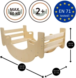 Ideel til familier med små børn, dette alsidige produkt fungerer som enten et picnicbord eller en gynge, hvilket gør det uundværligt til dine udendørsområder. Det er designet til børn fra to år, og den maksimale belastning er 60 kg, hvilket sikrer sikkerhed og komfort.