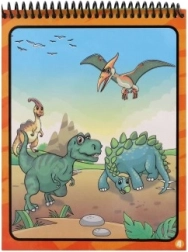 Oplev magien ved vandmaling med dette unikke maleblok-sæt, som indeholder fire genanvendelige sider med dinosaurmotiver. Børn bruger vandpennen, der fremhæver skjulte farver på billederne, og når de tørrer, bliver de igen gennemsigtige og klar til ny maling.