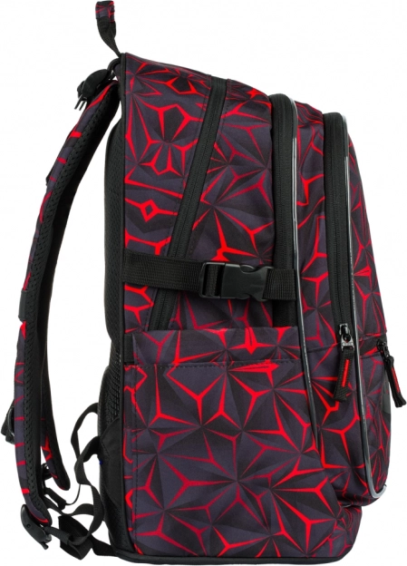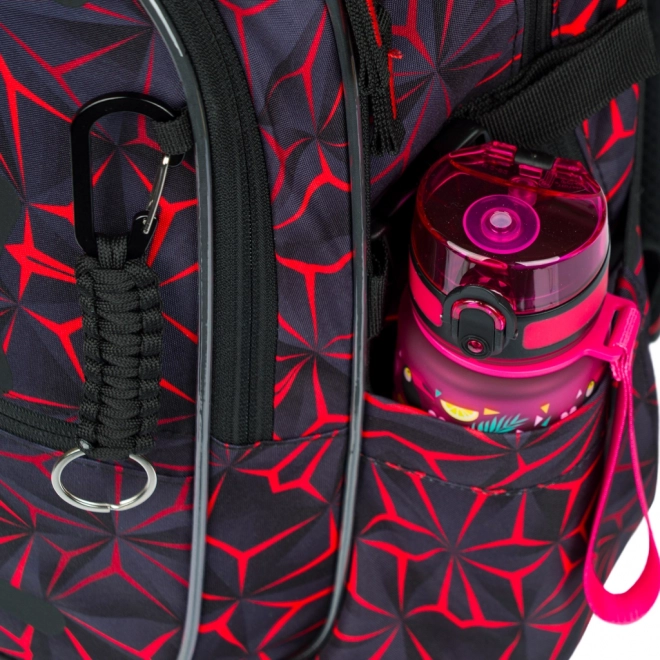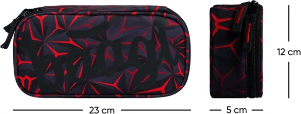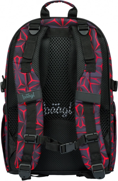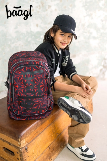 Det komplette skolesæt BAAGL Core Red Polygon i et moderne sort‑rødt polygon-design er ideelt til hver skoledag. Rygsækken vejer kun 900 g, skåner ryggen og giver samtidig gennemtænkt organisering, inklusive lomme til 15" bærbar eller tablet og siderum til drikkeflaske. Penalhus etui holder formen, har udklappelig skillevæg og lomme til skema, og posen med snørelukning passer til skiftesko, idræt og fritidsaktiviteter.