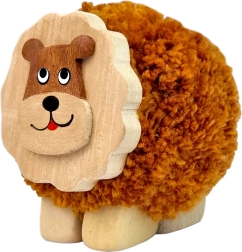 Forkæl din indretning med en levende atmosfære med denne håndlavede, dekorative træfigur af en løve. Trædelene kommer fra op til fem typer naturlige træarter, hver med en unik tekstur og farve: