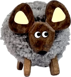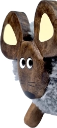 Denne dekorative musefigur kombinerer æstetik og funktionalitet. Med blød tekstilpels og håndmalede detaljer er hver mus unik. Lavet af fem forskellige slags naturligt træ, hver del har sin autentiske farve, der ikke er farvet.