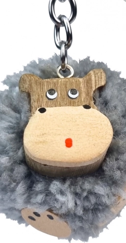 Trænøglering med pompon Flodhest er det ideelle valg for alle, der elsker natur og dyr. Hver enkelt er håndlavet af op til fem typer naturtræ, som giver en rig palet af naturlige farver: