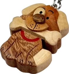 Hver nøglering er håndmalet, hvilket gør den unik og autentisk. Produkterne er ikke farvet, men har træets naturlige farve.