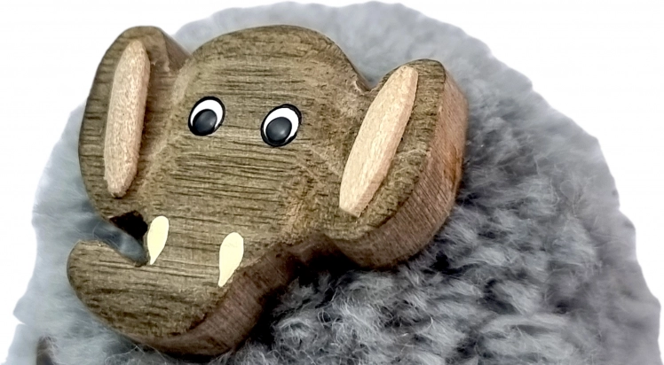 Dette unikke dekorative element bringer harmoni til ethvert rum takket være kombinationen af træelementer og en blød tekstilkrop. Det er ideelt for natur- og dyreelskere, som sætter pris på håndværk og naturlig skønhed. Elefanten er håndlavet og sammensat af fem typer naturligt træ, som ikke er farvet, men bevarer sine oprindelige nuancer.