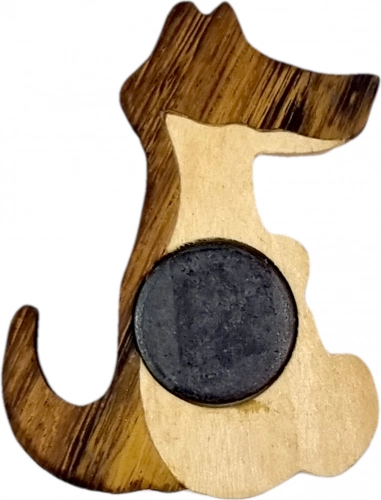 Magneten er sammensat af op til fem typer naturligt farvet træ og kun let opmalet. Hvert stykke er unikt med gedigent håndværk.