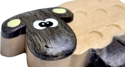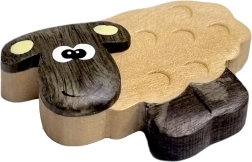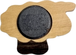 Denne træmagnet med får kombinerer solidt håndværk, et originalt udseende og lang holdbarhed. Takket være de naturligt farveforskellige træsorter virker hver magnet unik, uden kunstig farvning – kun med diskrete håndmalede detaljer for at fremhæve udtrykket.