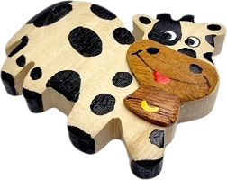 Denne træmagnet i form af en ko er en unik dekoration, som bringer charme og et naturligt præg ind i indretningen. Hvert stykke er unikt, fordi det er sammensat af op til 5 træsorter med naturligt forskellige nuancer, uden ekstra farvning. Diskret håndmaling understreger det nuttede udtryk og den omhyggelige finish.