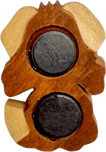 Magneten er sammensat af op til fem træsorter med naturlige farver. Fin, håndmalet finish fremhæver det autentiske udseende uden at skjule træets struktur.