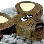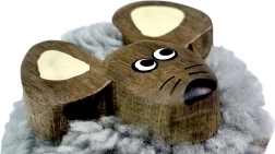 Denne træmagnet med musemotiv kombinerer naturlige materialer og omhyggeligt håndværk. Kroppen prydes af en blød bomuldspompon, hoved og ører er lavet af flerfarvede, eksotiske træsorter, som giver dekorationen et unikt udseende. Den holder glimrende på køleskab, tavle og andre metaloverflader og bringer leg og hygge ind i rummet.
