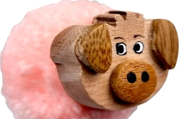 En sød træ-kuglepen med en blød pompon formet som en lille gris bringer et smil frem ved hver skriveoplevelse. Den er håndlavet af op til fem typer naturligt træ og passer perfekt til skole, kontor og hjemmet. Håndlavet, naturlige materialer, dekorativt tilbehør og en original gave til dyre- og naturelskere.