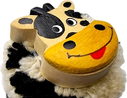 Koen med en blød sort-hvid pompon virker legesyg og bringer lys og humør i både køkken og børneværelse. Ideel som dekoration og en lille gave.