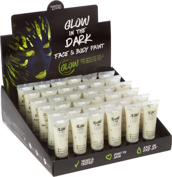 Skab fantastiske og unikke mønstre på din krop og ansigt med vores lysende maling, der i mørket forvandler sig til en smuk neon glans. Velegnet til alle lejligheder!