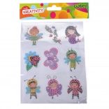 Diamantmaling er en populær gør-det-selv-aktivitet, der på legende vis lærer børn fokus og præcision. Man arbejder efter den medfølgende skabelon med forklaring (bogstaver/tal), hvor farvede sten sættes på de markerede felter ved hjælp af pen og voks. Resultatet er funklende klistermærker med fe-motiver, som fint pynter skoleting og børneværelset.