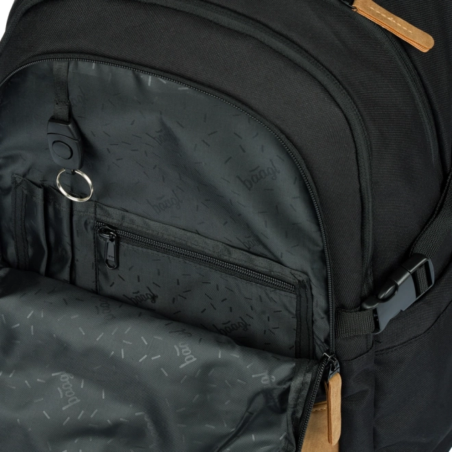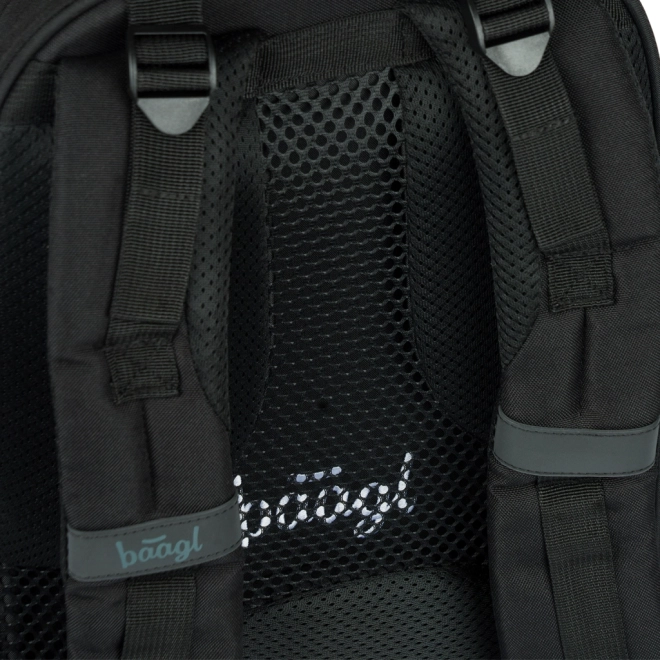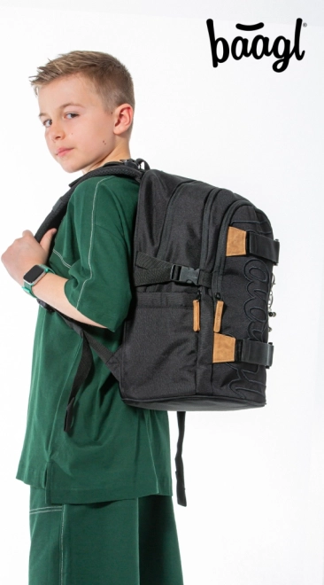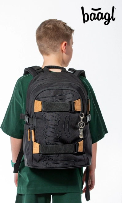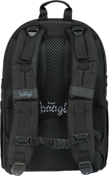 BAAGL Skate Darkness er en gennemtænkt skole rygsæk til daglig brug i skole, til fritidsaktiviteter og byture. Med tre separate rum med indvendig organizer og polstret lomme opbevarer du sikkert bøger, hæfter samt 15" laptop eller tablet. De faste sidelommer er ideelle til en drikkeflaske, og de forreste stropper holder nemt et skateboard.