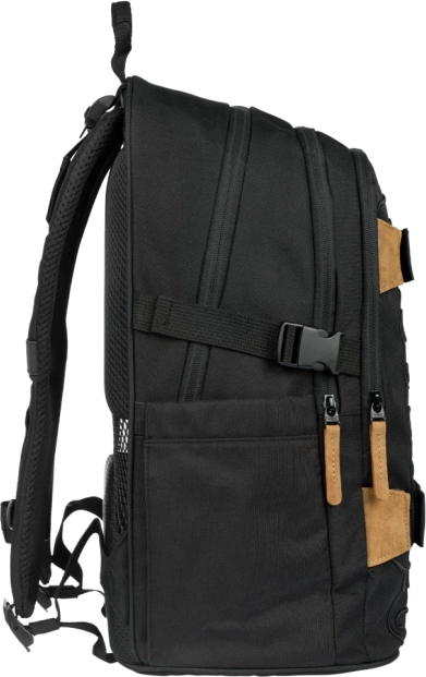 - Praktiske detaljer – holdere til skateboard, sidelommer til flaske, metalvedhæng formet som et skateboard.