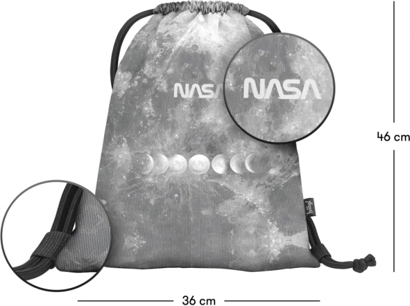 Holdbart, aftørringsvenligt materiale med NASA-motiv. Snørelukning med stærke snore gør den nem at bære på ryggen – ideel til fritidsaktiviteter.
