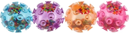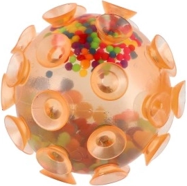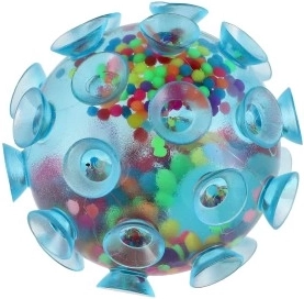Oplev sanseleg med en klemmebold, der er dækket af sugekopper over hele overfladen. Når den rammer en glat flade, suger den sig fast og tilbyder masser af kreative lege. De farvede kugler indeni giver behagelig modstand ved klemning og en beroligende lydeffekt.