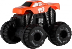 Bilen fås i 3 farver (orange, blå, rød) med racerdetaljer og numre (fx 79, 65). Store terrændæk med groft mønster og synlige fjederdetaljer understreger offroad-stilen. Suveræn til at udvikle finmotorik, koordination og konkurrenceleg.