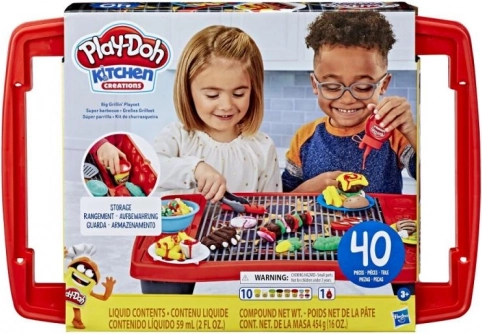 PLAY-DOH stort grillsæt giver børn fra 3 år masser af muligheder for at lege “ved grillen” og slippe fantasien løs. Skab yndlingslækkerier fra saftige burgere til farverige grøntsager, pynt med “ketchup” og server på tallerkener – alt lavet af blød, genanvendelig modellervoks.