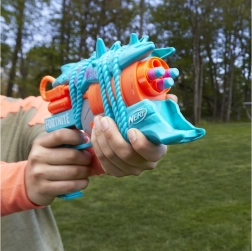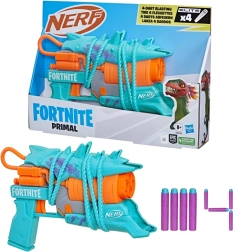 Den licenserede Nerf Fortnite Primal-blaster bringer stil og ydeevne direkte fra Fortnite-universet. Med plads til 4 pile og intuitiv ladning kan spillerne hurtigt sigte og skyde, både udendørs og indendørs. Det turkis‑orange farveskema med tematiske detaljer giver legen et unikt look.
