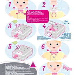 Når man trykker på brystet, ler dukken og siger “mama”, “papa”, hvilket styrker empati og omsorgsleg.