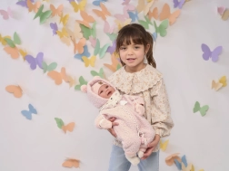 Den realistiske dukke LLORENS NEW BORN glæder hvert barn med sit milde udtryk og behageligt bløde krop. Når man trykker på brystet, høres latter og ordene “mama”, “papa”, hvilket fremmer fantasi og omsorgsevner. Arme og ben er ledforbundne, så dukken kan poseres og nemt sættes ned.
