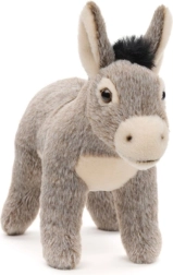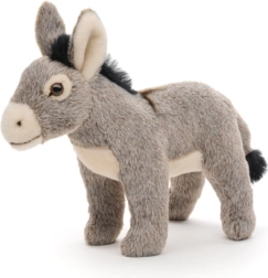 Dette charmerende plysbamse-æsel vil glæde ethvert barn med sin blødhed og realistiske detaljer. Kombinationen af grå pels med lys snude og mave virker naturlig og kær. Med den kompakte størrelse på 22 cm er den ideel til rejsen, i sengen og som pynt på børneværelset.