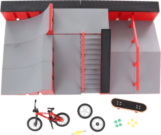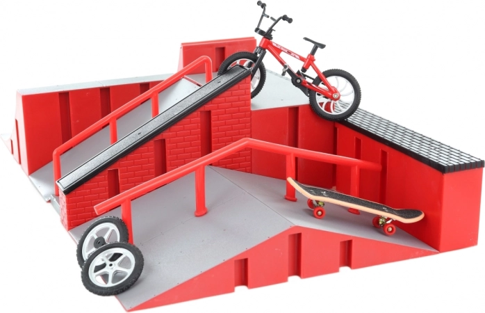 Træd ind i verden af en miniaturiseret skatepark, hvor du kan udføre forskellige tricks med realistisk tilbehør som et miniature skateboard og en BMX-cykel. Dette sæt tilbyder: