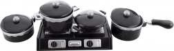 Indeholder 3 gryder, en wokpande, 4 låg, en kogeplade og andet tilbehør til realistisk madleg.