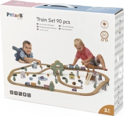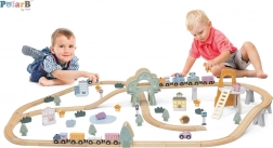 Oplev fantasiens verden med trætogbanen POLARB. Sættet indeholder 90 omhyggeligt fremstillede dele: lige og kurvede skinner, forhøjninger og en bro, tog med vogne, trafikskilte, huse, køretøjer, dyr, træer og klipper. Takket være den nemme samling kan der bygges utallige baner og scener, som børnene hele tiden ændrer og udvider.