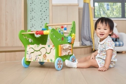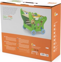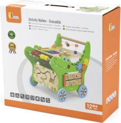 Træ-aktivitetswalker krokodille 12-i-1 VIGA er en stabil hjælper til de første skridt og samtidig et rigt læringscenter. Den robuste konstruktion giver stødig støtte under gang, mens de farverige aktiviteter udvikler sanser, motorik og kreativitet. Takket være den smarte placering af elementer øver børn farver, former og den første talforståelse.