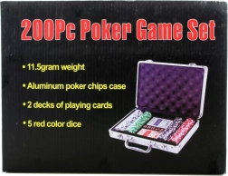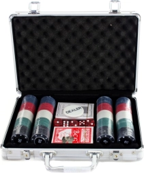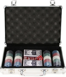 Sættet indeholder alt, hvad du behøver for et flydende spil for flere spillere – fra jetoner med behagelig vægt til to kortspil og terninger. Ideel gave til både begyndere og øvede spillere, et fremragende valg til pokeraftener derhjemme.