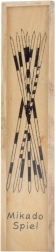 Klassisk selskabsspil Mikado i en elegant trææske, der glæder både små og store. Ideelt til at udvikle finmotorik, tålmodighed og fingerfærdighed. Den kompakte emballage med målene 19,5 × 4 × 2,5 cm er perfekt derhjemme og på farten. Velegnet til børn fra 3 år.