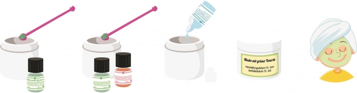 En rigt illustreret vejledning guider børnene trin for trin gennem hele processen med at lave hudvenlige kosmetiske masker.