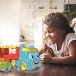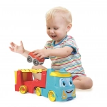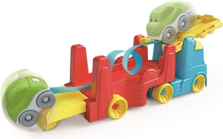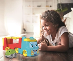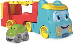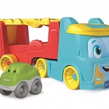Denne farverige autotransporter fra CLEMENTONI vil glæde alle små chauffører. I lastbiltilstand transporterer børn bilen og udforsker virkelighedens køretøjer, i banetilstand suser bilen ned ad sporet, vender rundt og laver sjove kolbøtter – glæden ved leg og læring i ét.