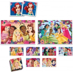 Oplev den magiske verden af DISNEY PRINSESSER med et rigt aktivitetssæt til børn. To puslespil i størrelsen 24 × 17 cm med forskelligt antal brikker, det klassiske vendespil og byggeklodser sikrer timevis af sjov og læring. Takket være ensartede billedmål kan børnene let gå videre til mere udfordrende samling.