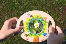 Dette robuste GOKI forstørrelsesglas til børn er et fremragende redskab for nysgerrige børn, der vil lære naturen og genstande omkring sig bedre at kende. Den massive trækrop ligger godt i hånden og sikrer sikker og behagelig brug selv for de mindste hænder.
