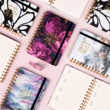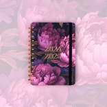 Den praktiske 18-måneders NOTIQUE Petito kalender med motiv af lilla blomster tilbyder overblik for årene 2024 og 2025, et overskueligt ugentligt linje-kalendarium på engelsk og tysk med helligdage samt rigelig plads til noter. Den ideelle størrelse 13 × 18 cm og den holdbare spiralindbinding gør den til en stilfuld ledsager til skole, arbejde og rejse.