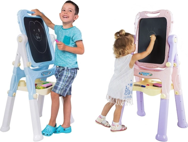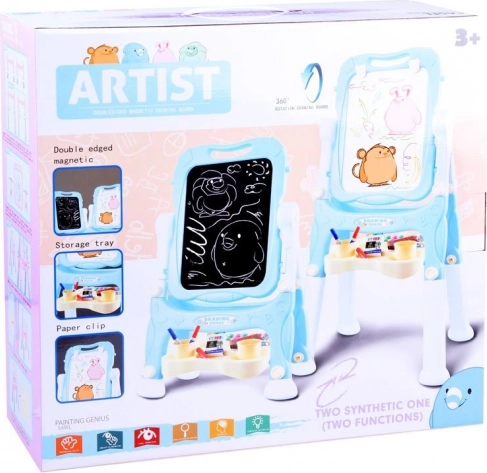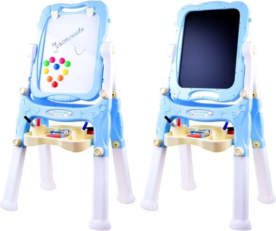 Dobbeltsiddet magnetisk og kridttavle-staffeli til børn – Blå