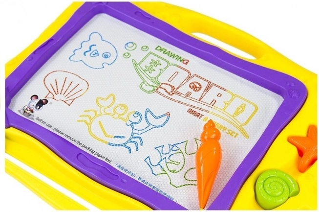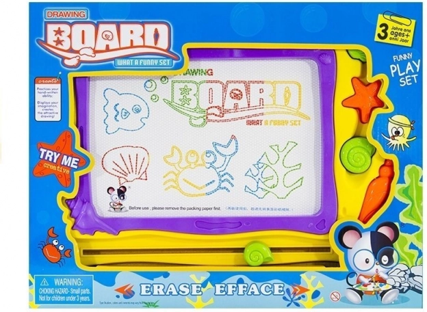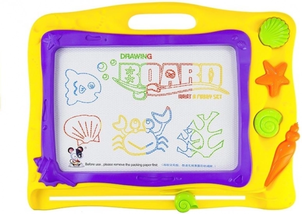 Den magnetiske tavle er et fremragende valg til papirfri tegning uden svineri. Under skærmen findes metalspåner, som ved berøring med den magnetiske stylus samler sig til billeder. For at slette dem skubbes den nederste slette-skyder let, og fladen er klar til ny skabelse.