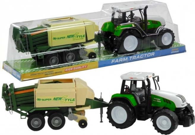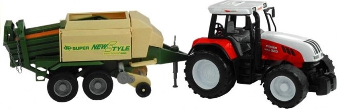 Traileren inkluderer bevægelige dele som udtrækkelig støtte, drejeligt indsamlingsindføringssystem og åbne side- og bagklapper. Denne spændende traktor fås i rød og grøn farve, hvilket tilføjer autencitet og sjov.