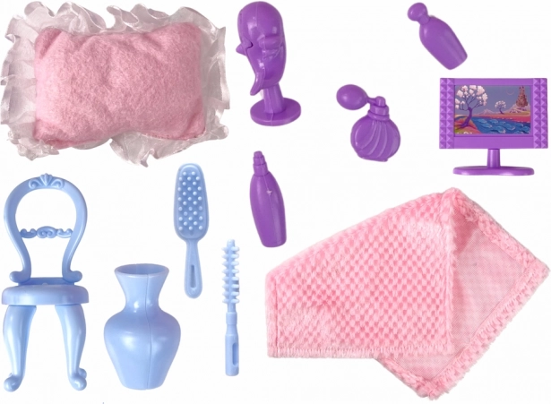 Trædukkehus 70 cm med LED-belysning – lyserød, MDF, med møbler