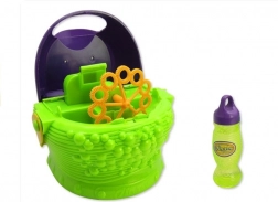 Brug af maskinen er meget enkel: tryk på knappen på forsiden, åbn det øverste låg, hæld den specielle væske i, luk låget og tænd maskinen med knappen TÆND/SLUK. Det er alt, nu kan du nyde synet af de smukke regnbuefarvede bobler, der svæver i luften.