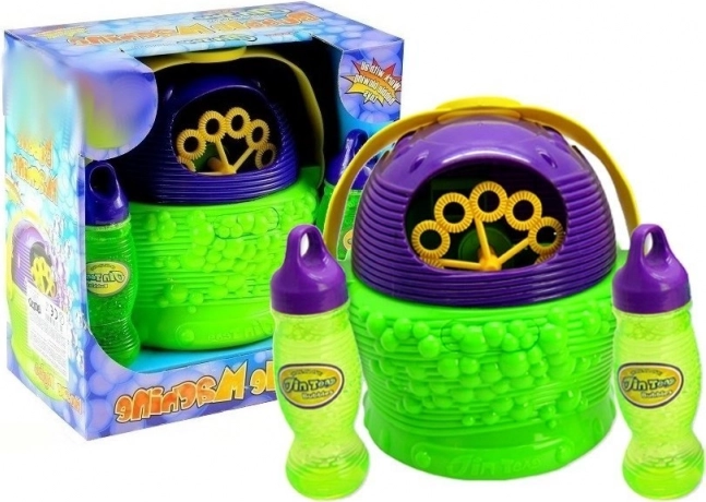 For at sikre langvarig sjov anbefales det at rengøre maskinen regelmæssigt: åbn låget, hæld de resterende væsker ud og tør indersiden af maskinen af med en ren fugtig klud. Maskinen er lavet af certificerede, holdbare materialer uden skarpe kanter og har et CE-certifikat, som sikrer sikkerhed for børn fra 3 år. Kræver 6 AA 1,5 V batterier, som ikke er inkluderet i pakken.