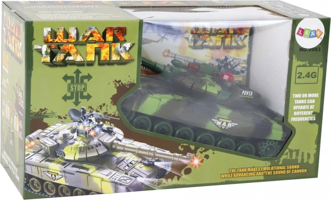 Tanken har bæltekørsel med bløde gummibælter, ideel til forskellige underlag. Det roterende tårn gør det muligt at skyde i enhver retning, og en åbenbar luge med tankfører øger realismen. Den drives af batterier, og hele sættet medfølger i pakken, hvilket sikrer problemfri leg. Den multifunktionelle fjernbetjening giver fuld kontrol over kørsel, drejning og skydning.