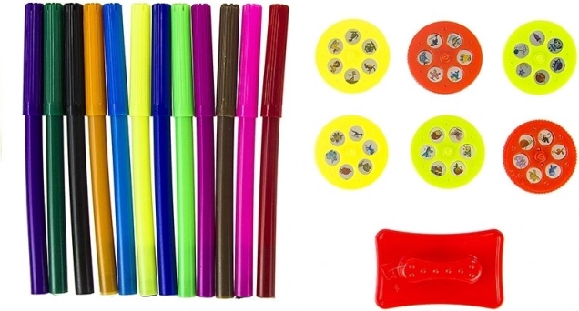Medfølger 6 udskiftelige diske med i alt 36 motiver, som børn nemt kan projicere og tegne af. Ideel til de første tegneskridt uden frustration.