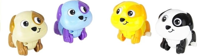 Denne farverige optrækkelige hund er et fantastisk valg til små dyreelskere. Takket være den enkle optræksmekanisme kører hunden selv frem, når den placeres på en plan flade, og viser underholdende bevægelser – viften med halen, bevægelse af ben og blinkende øjne. Den gode kvalitet og de markante farver stimulerer fantasien og fanger opmærksomheden med det samme.