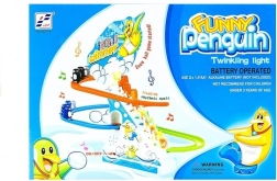 Dette spillestel med rullende trapper tilbyder interaktivt spil, hvor pingvinerne glider ned ad baner, mens rytmisk melodi lyder. Sikkert legetøj er designet med tanke på de yngste børn, der elsker farverige og livlige fornøjelser.